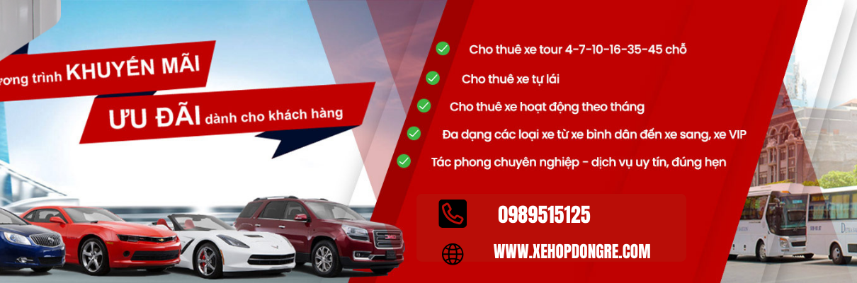 Chuyên cung cấp các loại xe du lịch đời mới từ 7 – 45 Chỗ . Đặt xehopdongre.com trên website trực tuyến, Có bao gồm tài xế xuất hóa đơn VAT. Hình thức giao dịch nhanh chóng, tiện lợi, uy tín. Quý khách có thể xem chi tiết hơn những chủ đề bên dưới.